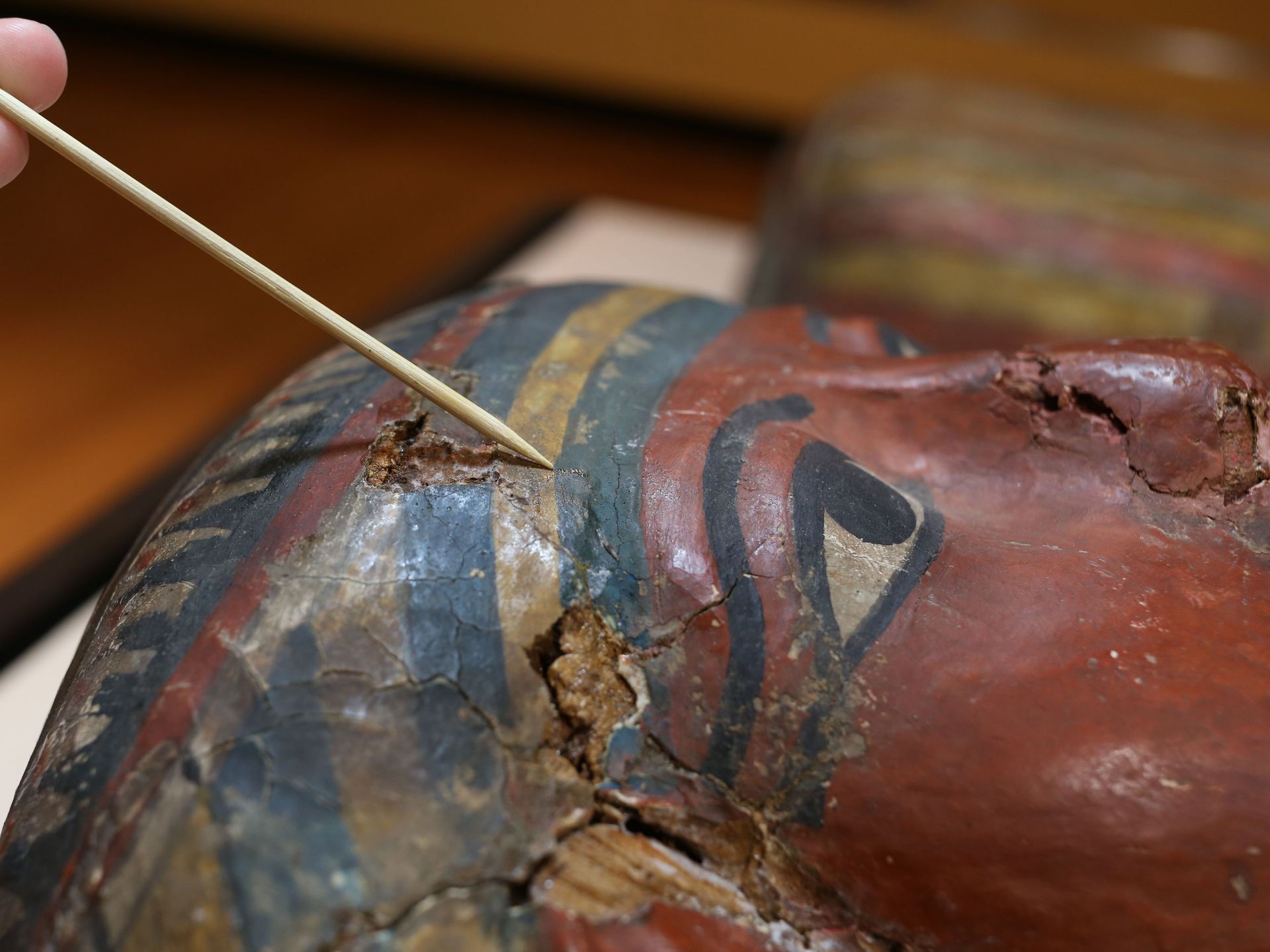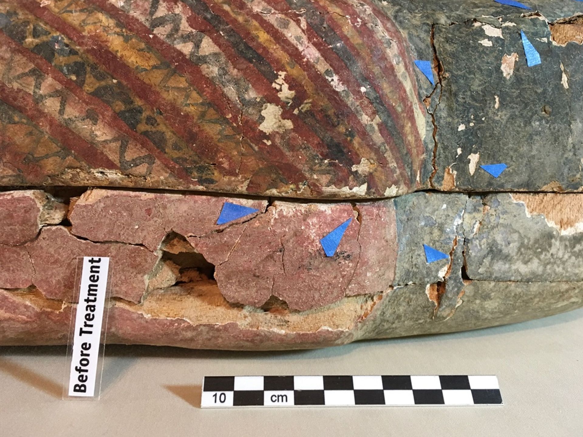 The project involved the consolidation and stabilization of the inner and child sarcophagus’ in preparation for transportation during a museum’s renovation and expansion. Unique conservation practices were implemented out of respect for the sacred antiquities.