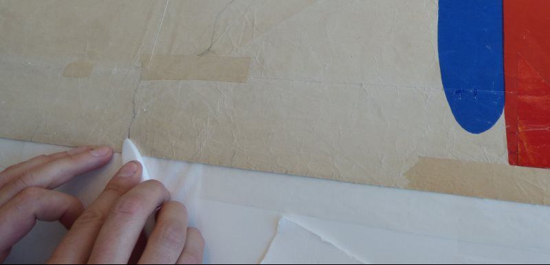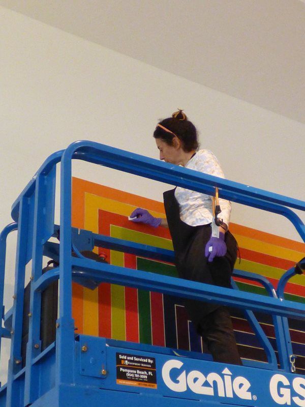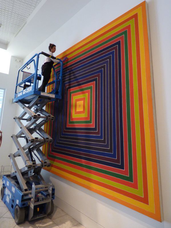 Recent cleaning of a large painting by Frank Stella. The challenge with this project was the boundaries working with an artwork where the artists applied the paint to a 'raw' canvas, hence 'not primed'.