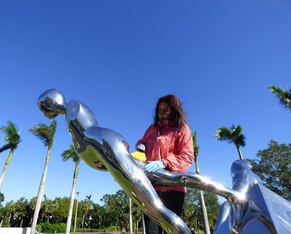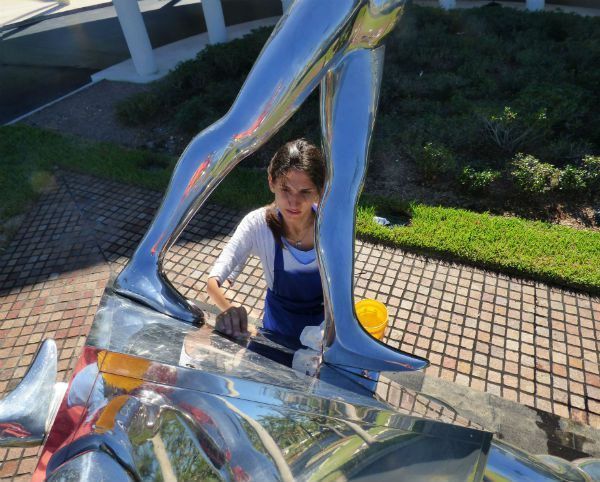Three-day project. 2 conservators. The project required precise and involved polishing of the outdoor sculpture. The goal to bring the original finish was achieved.
