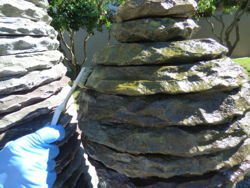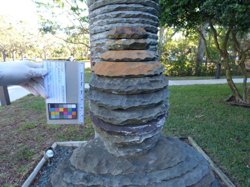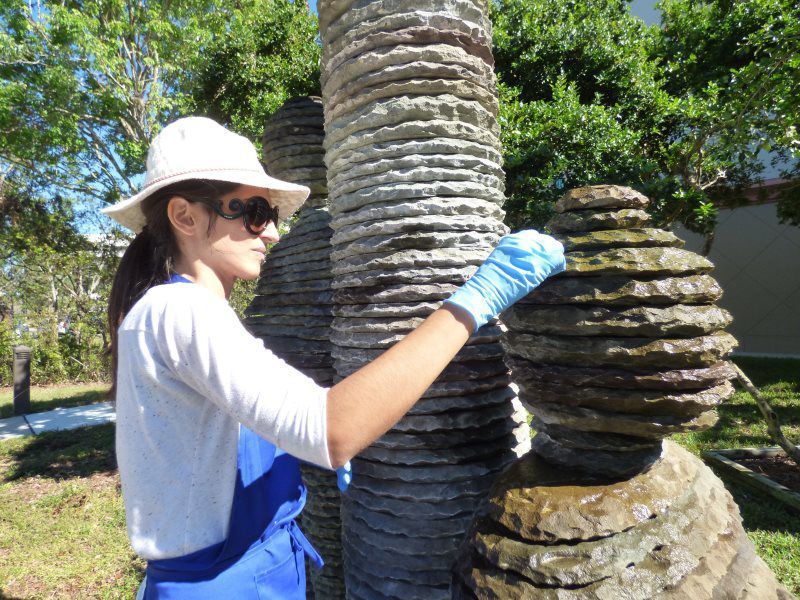 With stone sculpture, it is common for mold to form. Removing of mold and maintenance is essential.