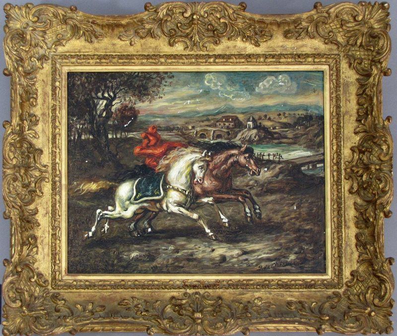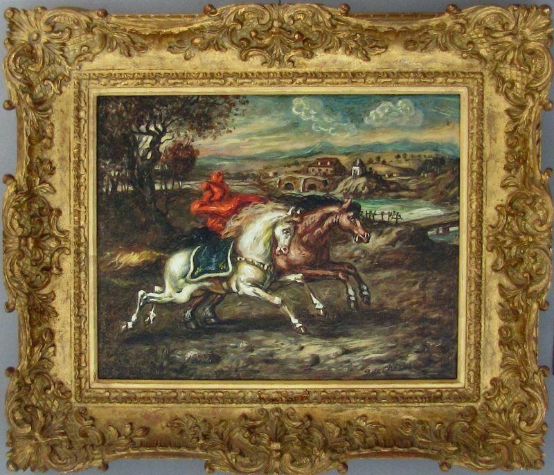 Giorgio de Chirico was a paragon of early and late Surrealism. The Italian painter influenced and inspired his contemporaries along with an entirely new generation of Cubist and Futurist artists. The painting: Due cavalli fuggenti in un paese from 1959 was conserved by Viviana Dominguez at Art Conservators Lab.