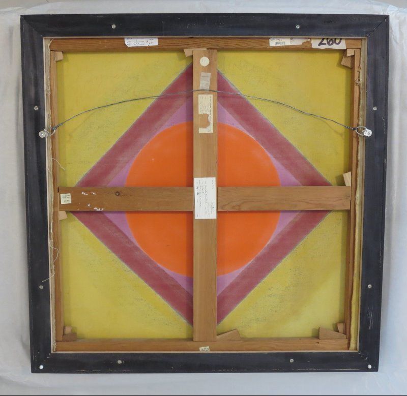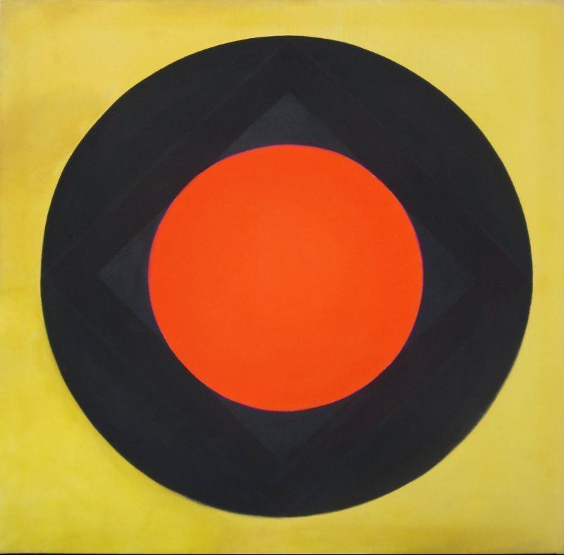 Kenneth Noland was a very famous American abstract painter. He was one of the best-known American Color Field painters. The 1960’s painting belongs to a series of a series of studies of concentric rings or bulls eyes, commonly referred to as targets.