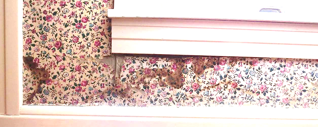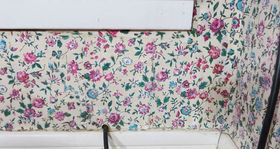 Among Lady Birds’ selection of decorative elements for the ranch are the wallpapers for the presidential couple's bedroom, and the children and guests rooms, as well as the bathrooms, on the first and second floors. Over the years termites and silverfish ate through the material giving the wallpaper a colander-like appearance. Water filtering through the window produced stains, wrinkles and discolorations.