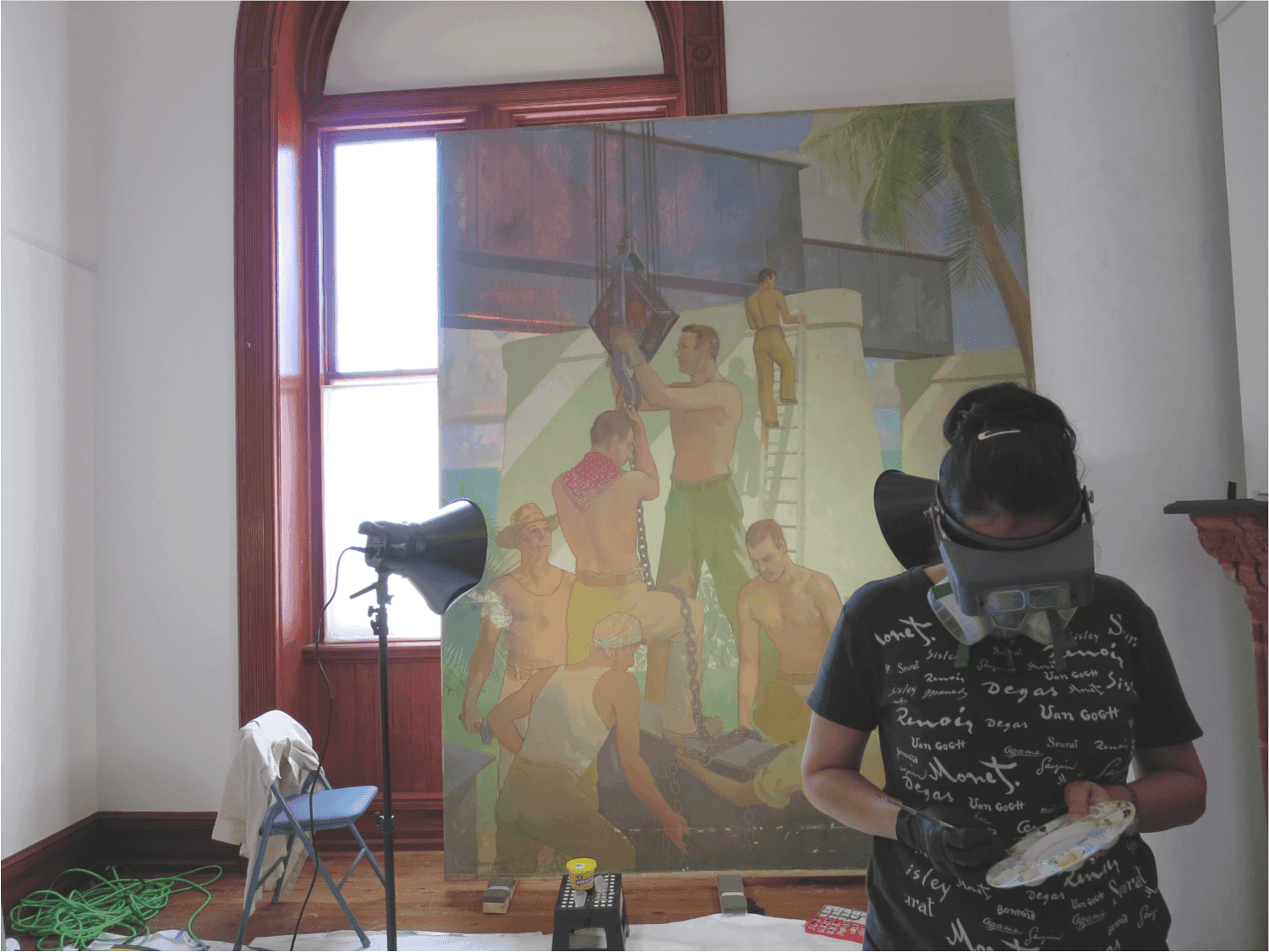 Curious about this exciting project's journey? Visit my blog page to view the multiple photographs and learn about the step by step conservation. Conserving WPA Murals in Key West City Hall.