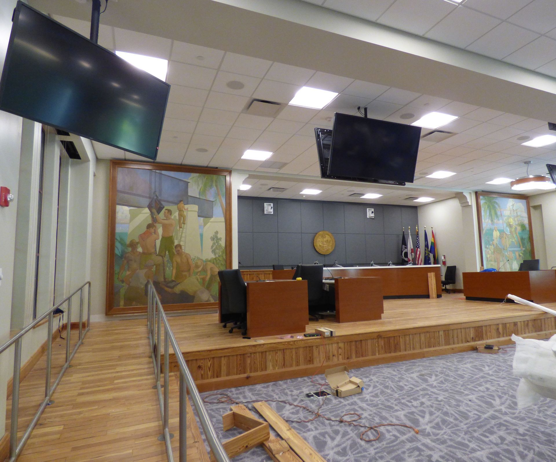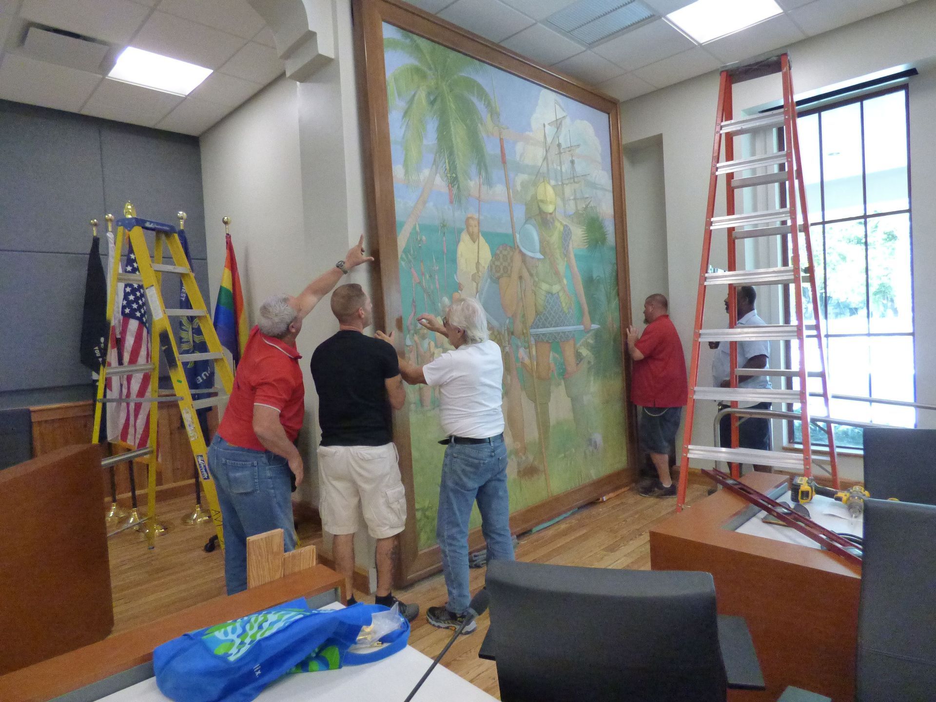 The prior conservation, move and installation was very challenging and was graciously completed with the efforts of contracted professionals, volunteers, and county staff. The murals are presently being appreciated at the Key West City Hall.